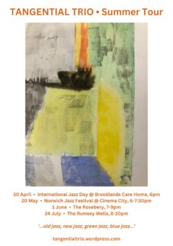 1st June – Tangential Trio @ The Rosebery, Norwich NR3 (see poster below). New repertoire, same band… 7-9pm, free, very nice beer.